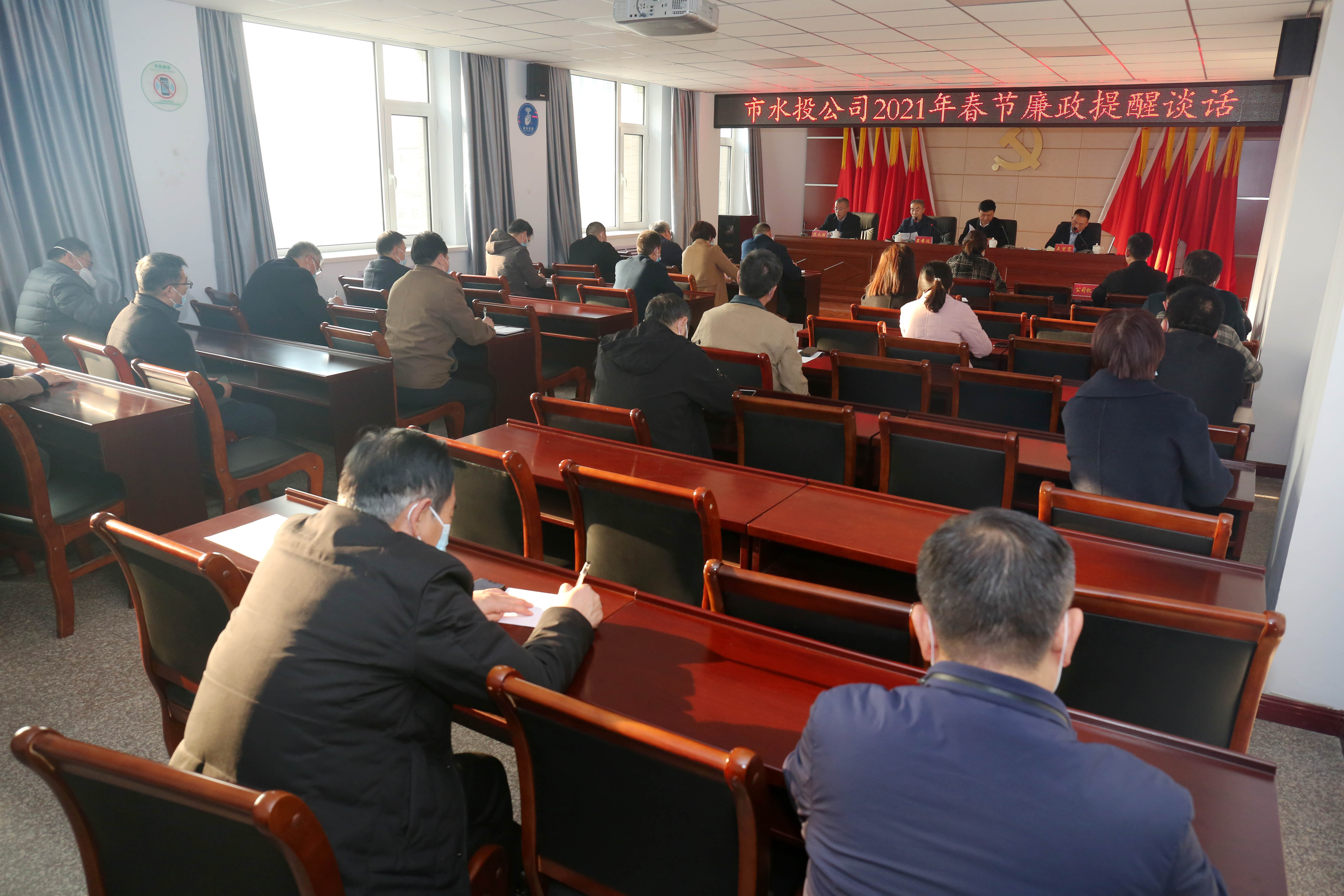 2021年新春佳節(jié)將至,為進(jìn)一步落實(shí)全面從嚴(yán)治黨要求,持之以恒貫徹落實(shí)中央八項(xiàng)規(guī)定精神,嚴(yán)防“四風(fēng)”問題在春節(jié)期間反彈,確保全體干部職工度過一個歡樂祥和、文明節(jié)儉、風(fēng)清氣正的節(jié)日,2月9日下午,我公司召開2021年春節(jié)前廉政提醒談話會,持續(xù)敲響紀(jì)律警鐘。公司領(lǐng)導(dǎo)班子成員、機(jī)關(guān)中層干部、各下屬單位領(lǐng)導(dǎo)班子成員參加會議。