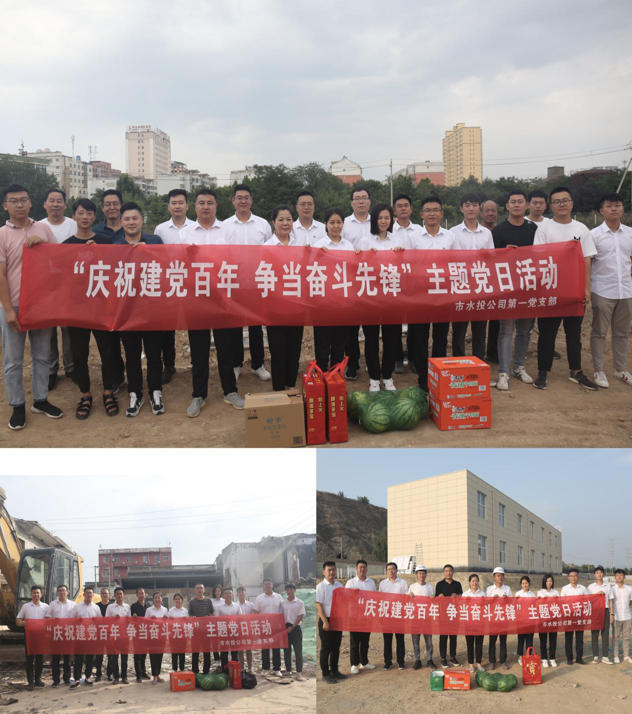 在建黨一百周年之際,為充分表達黨組織對一線黨員干部群眾頂酷暑、戰(zhàn)高溫,攻堅克難抓建設的工作干勁的鼓勵和肯定,對一線黨員干部群眾的生產(chǎn)生活提供一定的幫助,為他們送去組織的關(guān)心和關(guān)愛,在學習活動結(jié)束后,支部部分黨員、入黨積極分子共同來到干河綜合治理工程3標段項目工地、姚暹渠禹都段項目工地和鴨子池項目工地,詳細了解各段施工進度及存在的困難問題,現(xiàn)場溝通交流、積極出謀劃策,同時為各項目工地黨員干部群眾送上了西瓜、飲料、防蚊液、花露水等消暑品。
