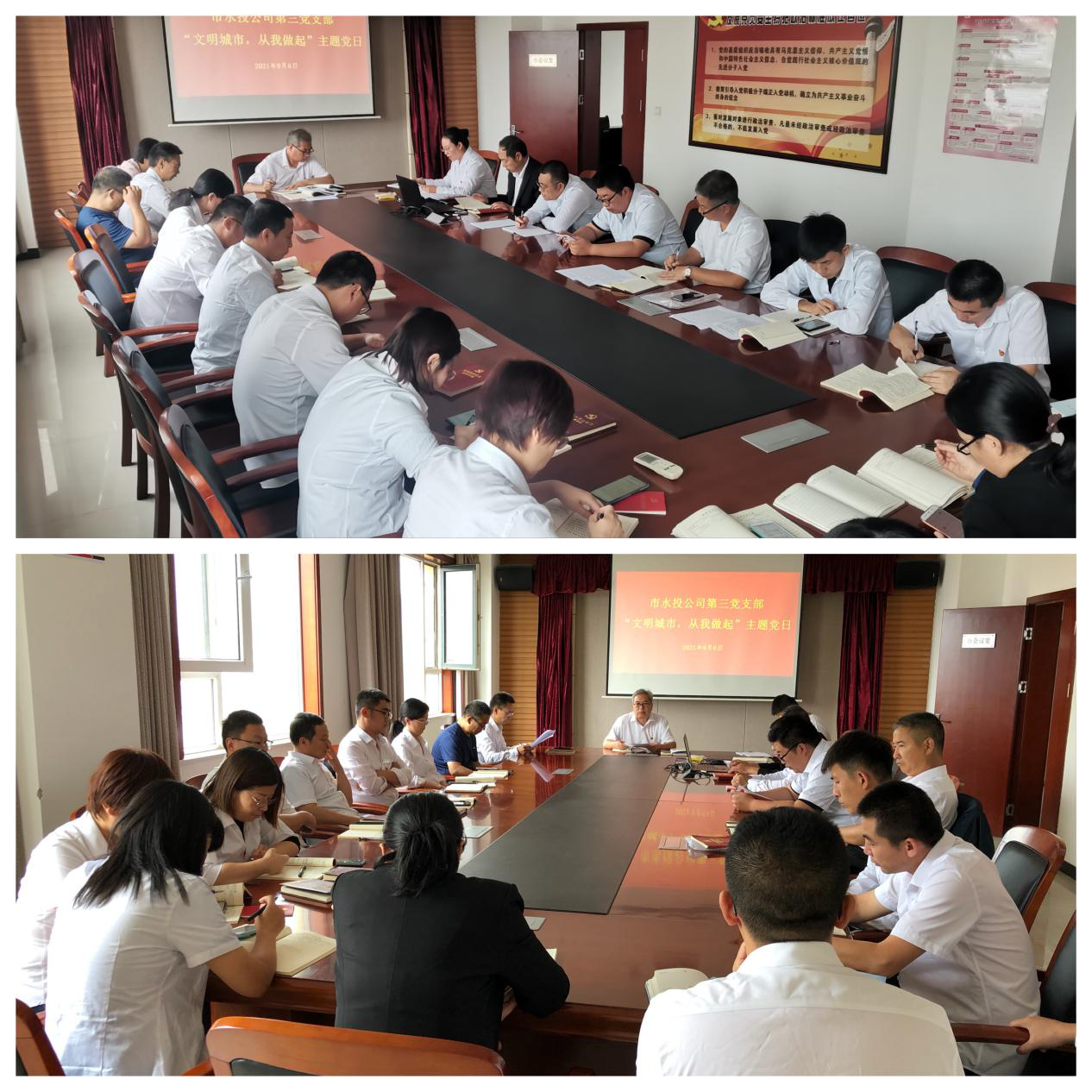 按照市委組織部和市委黨史學(xué)習(xí)教育領(lǐng)導(dǎo)小組下發(fā)的《關(guān)于認(rèn)真開(kāi)展2021年9月黨支部主題黨日活動(dòng)的通知》和《黨史學(xué)習(xí)教育九月份重點(diǎn)任務(wù)提醒卡》文件要求,結(jié)合公司黨委工作安排,9月6日下午,支部組織黨員、各科室負(fù)責(zé)人和群眾代表開(kāi)展了“文明城市,從我做起”主題黨日活動(dòng)。