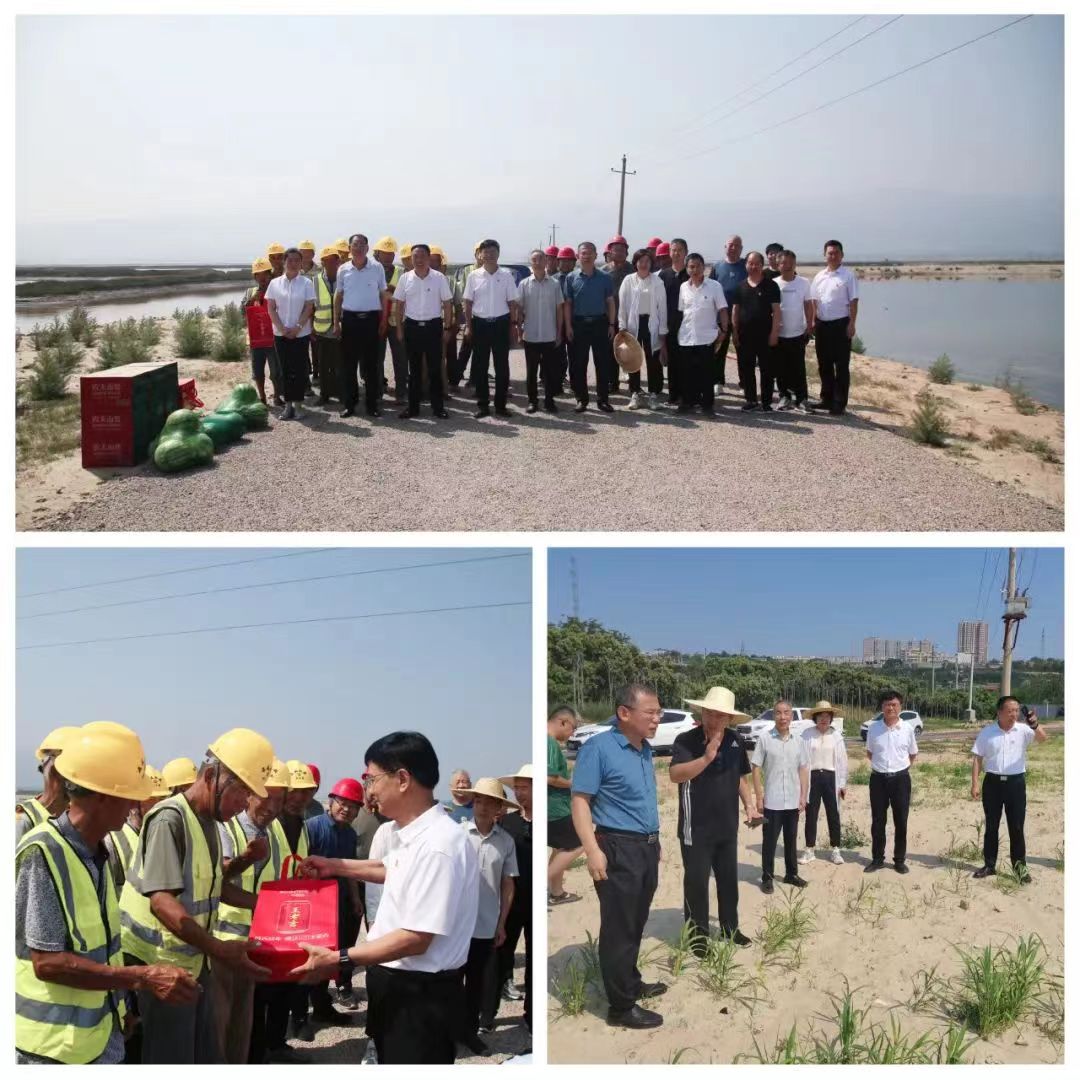 隨后,公司領(lǐng)導(dǎo)一行人來到鹽湖項(xiàng)目11號(hào)堤埝施工現(xiàn)場,慰問在高溫酷暑下堅(jiān)持奮戰(zhàn)在一線的工人,并為他們送去防暑降溫慰問品。同時(shí),深入鹽湖堤埝二號(hào)灘和19號(hào)路,詳細(xì)了解灘面護(hù)坡綠化情況,坡面綠草茵茵,不同種類植物長勢喜人;現(xiàn)場查看了傾斜電桿更換和扶正處理后情況,一定程度上消除了安全隱患,確保周邊居民和鹽池防汛調(diào)水用電安全,同時(shí)也起到了美化環(huán)境效果。