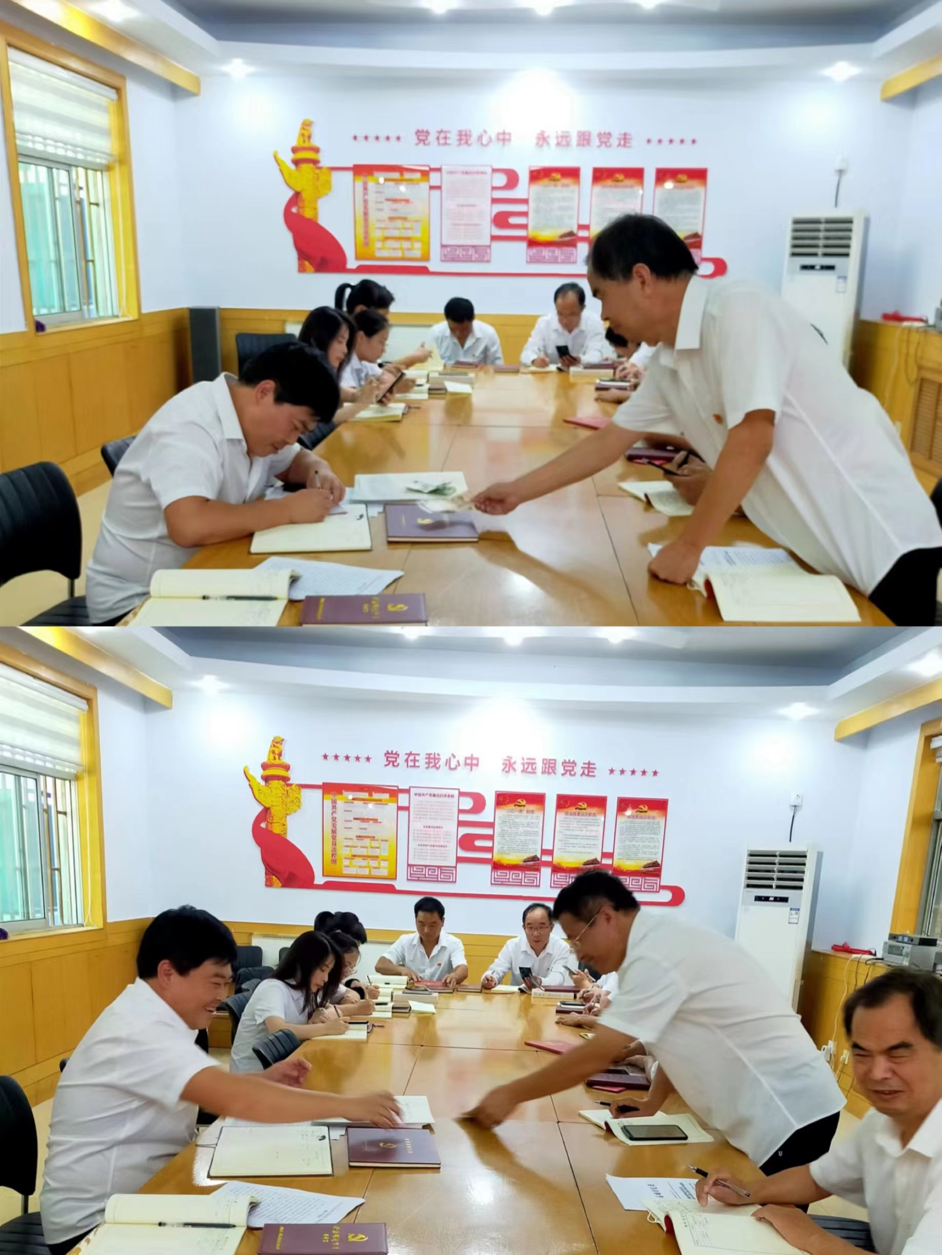 會(huì)前,全體黨員逐個(gè)向支部繳納了本月黨費(fèi),并進(jìn)行了黨費(fèi)收繳臺(tái)賬登記。