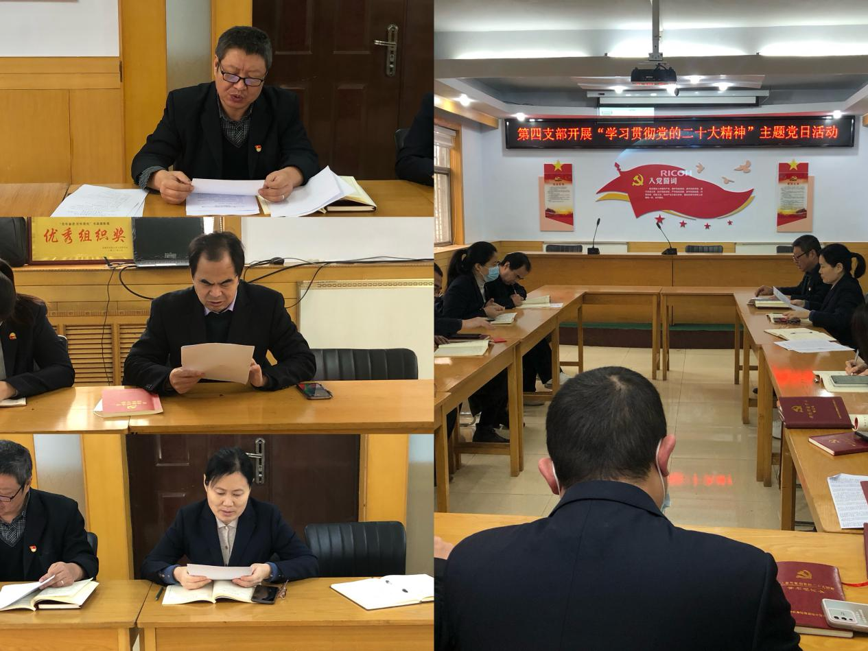 按照市委組織部《關(guān)于認(rèn)真開(kāi)展2022年12月主題黨日活動(dòng)的通知》及公司黨委要求,并結(jié)合支部工作安排,第四支部于12月5日開(kāi)展“學(xué)習(xí)貫徹黨的二十大精神”主題黨日活動(dòng)?,F(xiàn)將情況匯報(bào)如下: