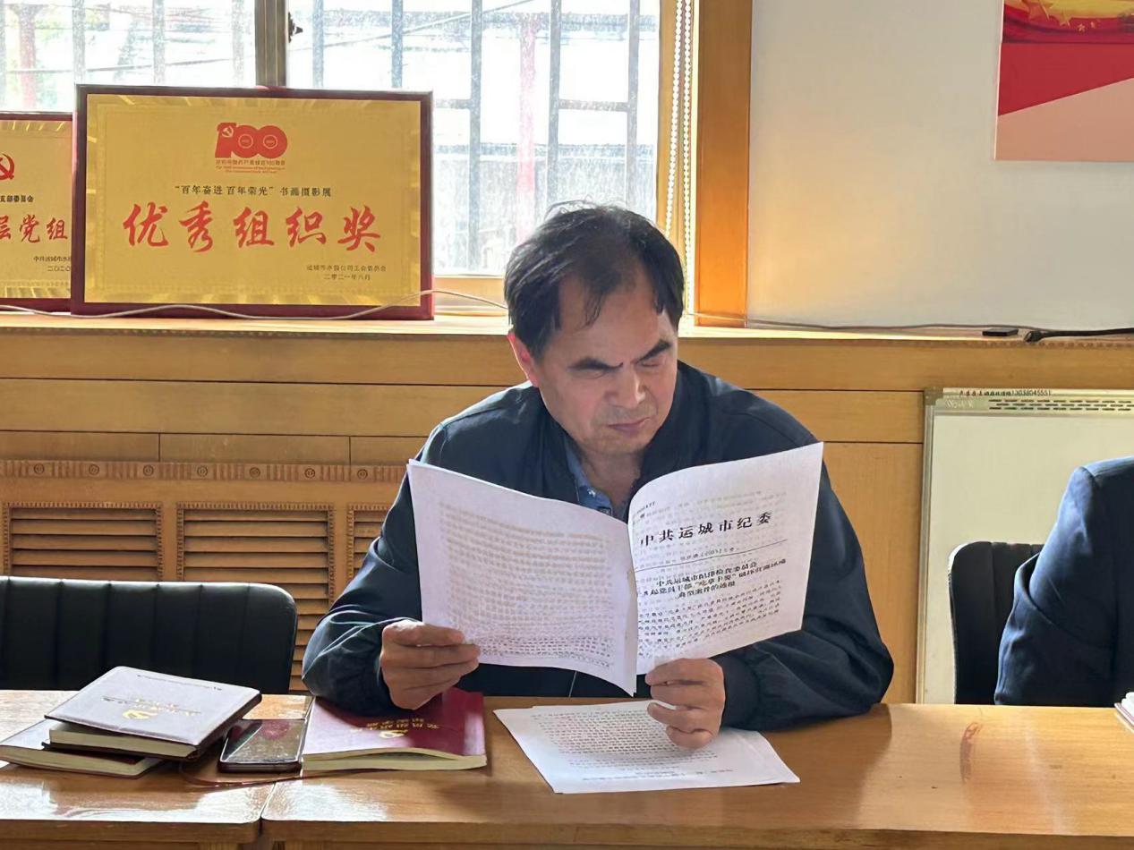 為繼續(xù)加強(qiáng)黨員領(lǐng)導(dǎo)干部黨風(fēng)廉政建設(shè),嚴(yán)明紀(jì)律規(guī)矩,支部紀(jì)檢委員狄紅革同志傳達(dá)了《 中共運(yùn)城市紀(jì)律檢查委員會(huì)關(guān)于8起黨員干部“吃拿卡要”破壞營(yíng)商環(huán)境典型案件的通報(bào)》。