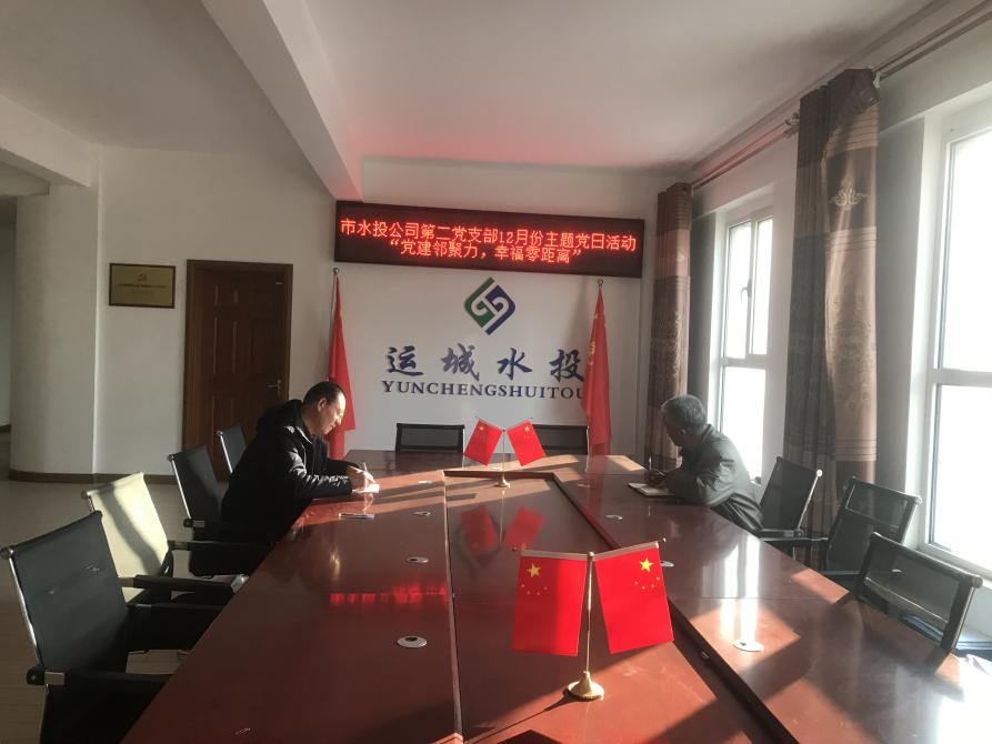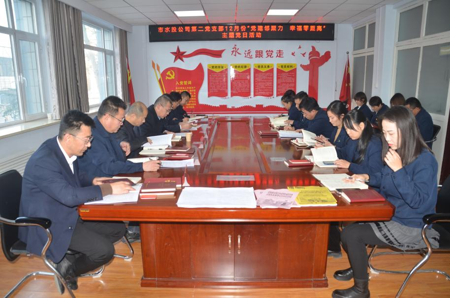 按照市水投公司黨委統(tǒng)一部署要求,第二黨支部于2023年12月4日下午組織全體黨員、積極分子開展了“黨建鄰聚力 幸福零距離”主題黨日活動,會議分為兩個會場進(jìn)行,支部會議由副書記高鷹主持,臨時黨支部會議由書記吳爭兵主持。