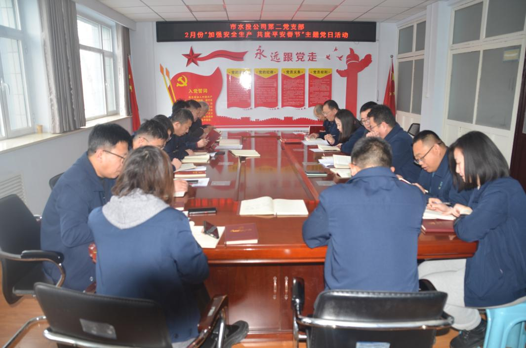 按照市水投公司黨委統(tǒng)一部署要求,第二黨支部于2024年2月5日下午組織全體黨員、積極分子開(kāi)展了“加強(qiáng)安全生產(chǎn) 共度安全春節(jié)”主題黨日活動(dòng),會(huì)議由支部書(shū)記吳爭(zhēng)兵主持。