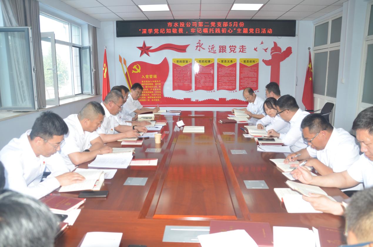 按照市水投公司黨委統(tǒng)一部署要求,第二黨支部于2024年5月6日下午開展了“深學(xué)黨紀(jì)知敬畏 牢記囑托踐初心”主題黨日活動,支部全體黨員、積極分子參加會議,支部書記吳爭兵主持會議。市水投公司黨委委員,副總經(jīng)理范永勝參加支部主題黨日活動。