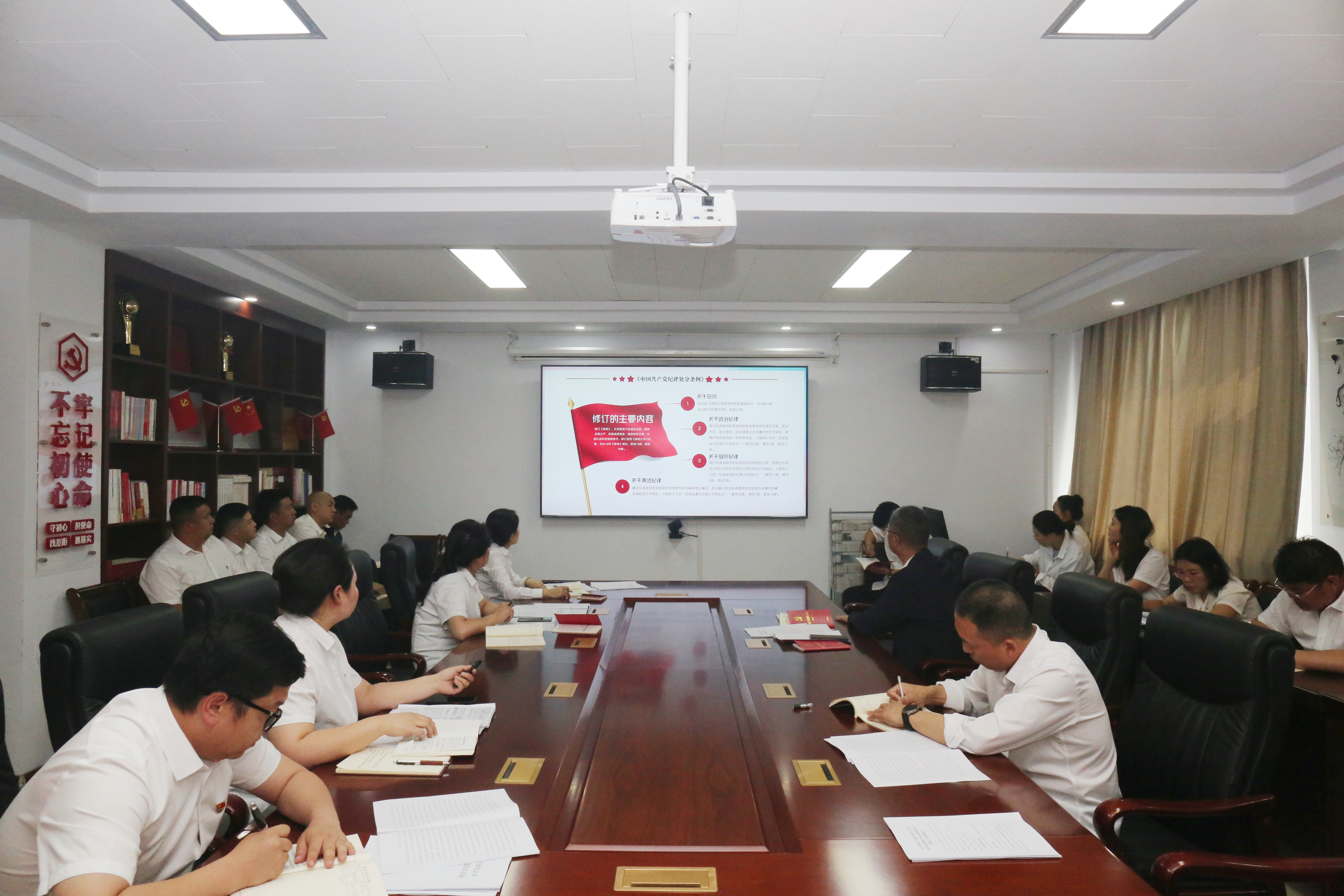 為扎實(shí)推進(jìn)黨紀(jì)學(xué)習(xí)教育走深走實(shí),進(jìn)一步引導(dǎo)全體黨員干部樹牢責(zé)任意識(shí)、底線意識(shí)、紀(jì)律意識(shí),組織委員胡凱菲圍繞《中國共產(chǎn)黨紀(jì)律處分條例》修訂的重要意義、新修訂的主要內(nèi)容以及如何抓好《條例》的貫徹執(zhí)行,理論聯(lián)系實(shí)際進(jìn)行授課,帶領(lǐng)參會(huì)人員重點(diǎn)對《條例》中新增的、平時(shí)容易忽略的、同志們可能存在認(rèn)識(shí)誤區(qū)等違紀(jì)行為進(jìn)行重點(diǎn)學(xué)習(xí),引導(dǎo)黨員干部不斷強(qiáng)化紀(jì)律意識(shí)和規(guī)矩意識(shí),嚴(yán)格規(guī)范“八小時(shí)”以外言行舉止,自覺抵制不良風(fēng)氣,從源頭上筑牢遠(yuǎn)離腐敗的思想防線。
