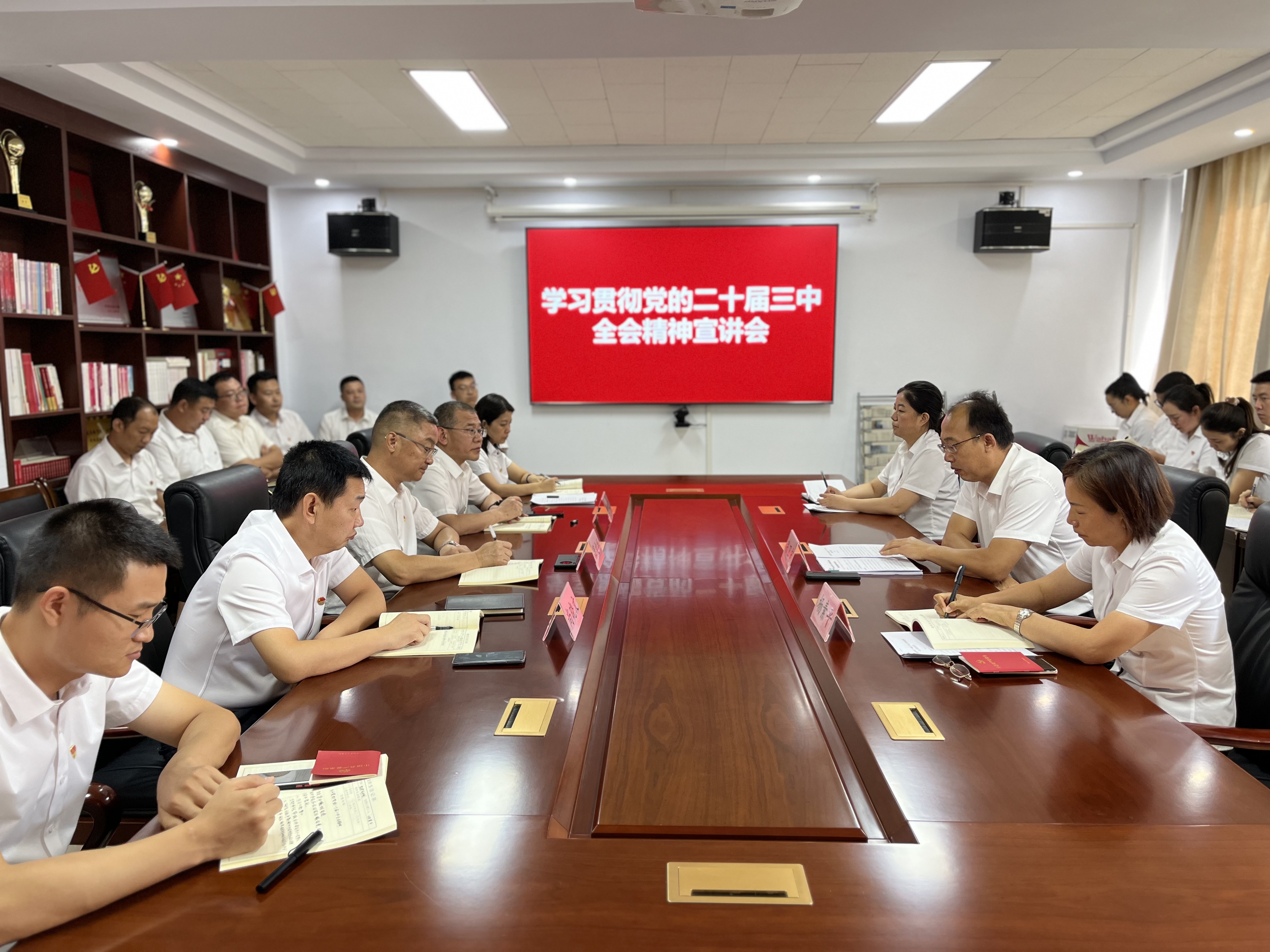 根據(jù)上級黨委工作安排,市工信局(市國資委)黨組成員(黨委委員)、市紀(jì)委監(jiān)委派駐市工信局紀(jì)檢監(jiān)察組組長張衛(wèi)宏到公司對機關(guān)全體黨員開展學(xué)習(xí)貫徹黨的二十屆三中全會精神宣講會。黨的二十屆三中全會對深化國資國企改革進(jìn)一步作出重大部署,張組長以此為切入點對全會精神的核心要義和精神實質(zhì)進(jìn)行了深入淺出的宣講,對公司下一步發(fā)展提出七點建議,要求領(lǐng)導(dǎo)班子成員及全體黨員要以學(xué)習(xí)貫徹習(xí)近平總書記關(guān)于國有企業(yè)改革發(fā)展和黨的建設(shè)的重要論述精神為統(tǒng)領(lǐng),把好方向、守正創(chuàng)新,將學(xué)習(xí)貫徹落實二十屆三中全會精神與公司實際緊密結(jié)合,切實做到學(xué)思用貫通、知信行統(tǒng)一。