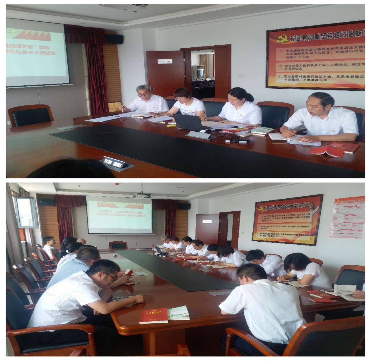 在開展組織生活環(huán)節(jié),支部書記徐睿同志首先傳達(dá)了運城市宣傳部下發(fā)的《關(guān)于持續(xù)做好黨的十九屆四中全會精神和習(xí)近平總書記“三篇光輝文獻(xiàn)”精神宣講通知》,之后圍繞《貫徹落實“三篇光輝文獻(xiàn)”精神 書寫新時代中國特色社會主義新篇章》給黨員們上了一堂專題黨課,要求黨員干部時時重溫文獻(xiàn)精神,將習(xí)總書記的重要講話落實到具體的工作中,不斷思考,注重落實,為我國水利事業(yè)貢獻(xiàn)自己的力量。