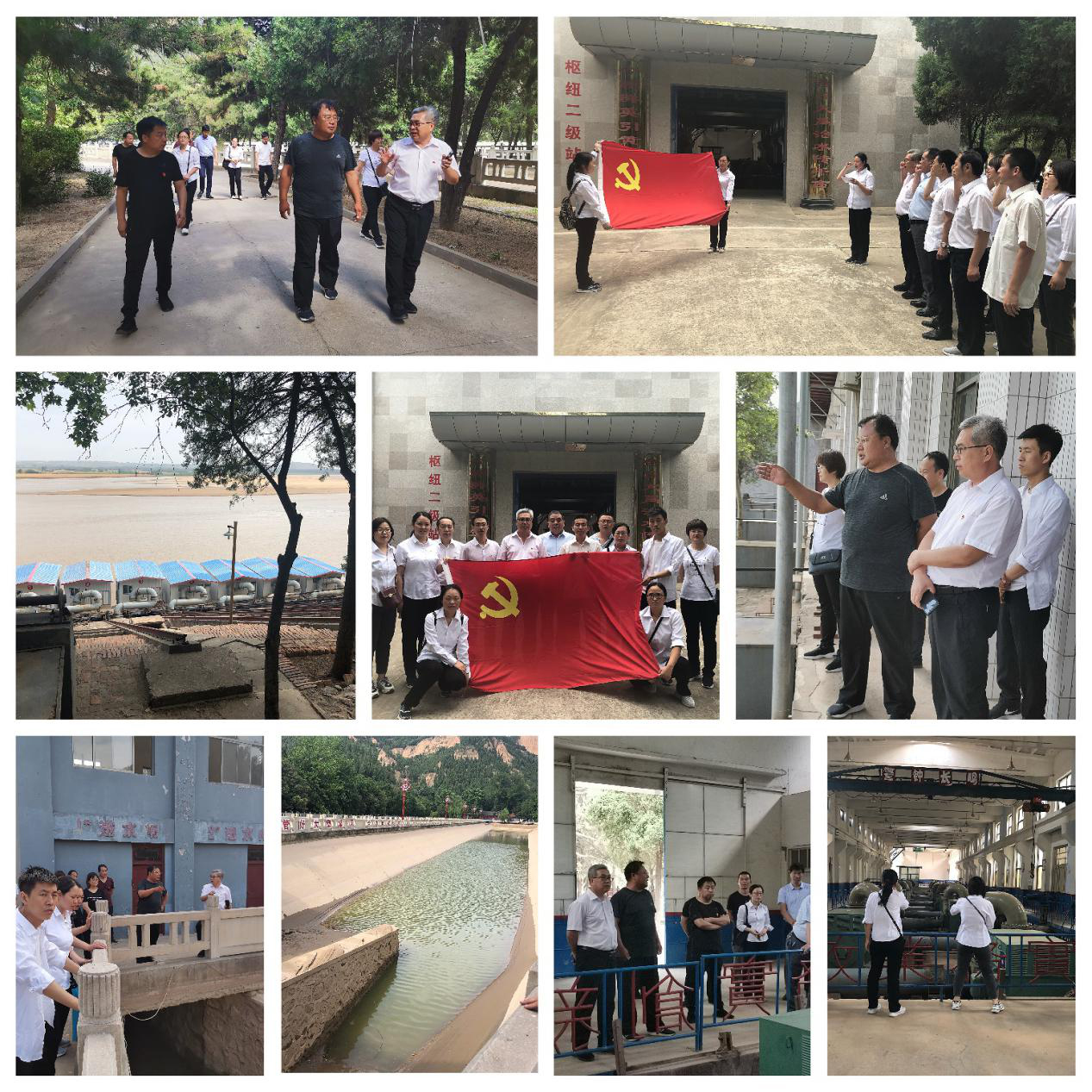 在大禹渡董局長的帶領(lǐng)下,同志們先后參觀了一級站、沉沙池、二級站,工作人員對灌區(qū)當(dāng)初的建設(shè)、泵站目前的運行情況等進行了詳細(xì)的介紹,之后雙方進行了座談,徐睿書記指出,大禹渡在建站初期有三個特點:一是移動式泵車,二是沉沙池,三是二級站揚程最高,有190多米。今天深入灌區(qū)與施工運行管理人員進行交流溝通,了解運行中存在的問題,使施工管理運行與設(shè)計有效銜接,促進我們進一步要提高用科學(xué)思維思考、用科學(xué)態(tài)度做事,真正做到黨建工作和設(shè)計任務(wù)深度融合,做到真學(xué)、真懂、真信、真用。我們要提高設(shè)計服務(wù)意識,提升設(shè)計服務(wù)質(zhì)量,加強業(yè)務(wù)學(xué)習(xí),提升業(yè)務(wù)能力,使我院設(shè)計質(zhì)量上個新臺階。另外,同志們就工作中遇到的技術(shù)問題同大禹渡管理人員進行了深入交流,黨員們還在黨旗下重溫入黨誓詞,不忘初心、牢記使命,更加堅定了作為水利人的責(zé)任和擔(dān)當(dāng)。