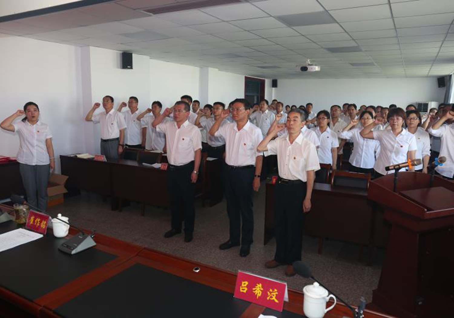 大會(huì)在雄壯的國(guó)歌聲中拉開帷幕,黨委辦公室主任郝麗娜同志領(lǐng)誓,全體黨員面對(duì)黨旗,共同重溫了入黨誓詞。