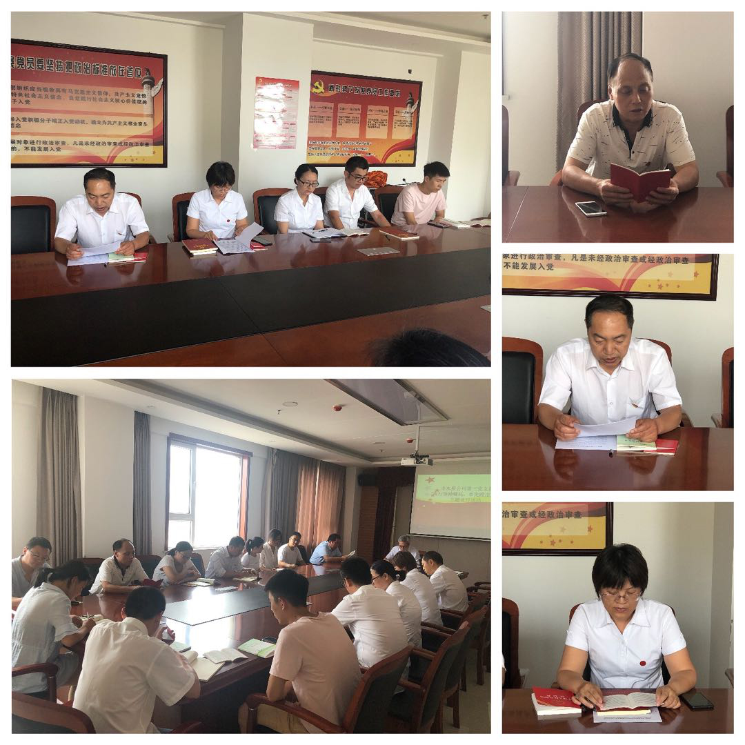 本月過“政治生日”的黨員郭紅爭、常雙歡同志領(lǐng)誦,全體黨員齊誦《黨章》第二章部分內(nèi)容。