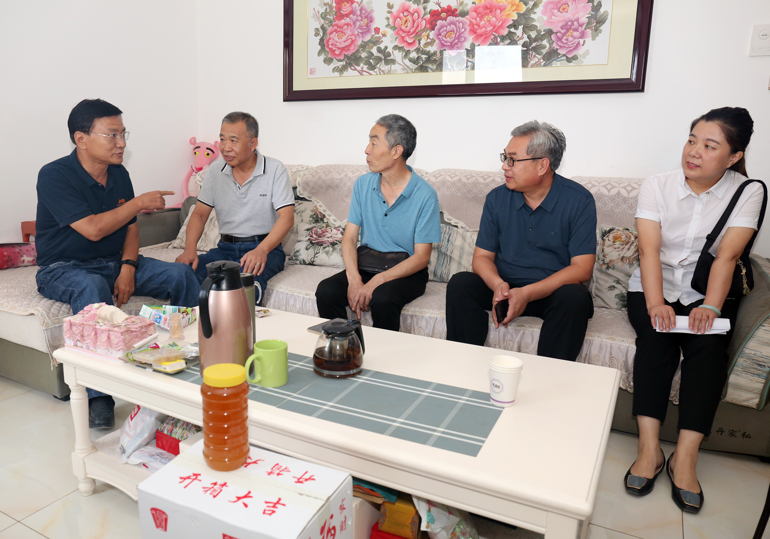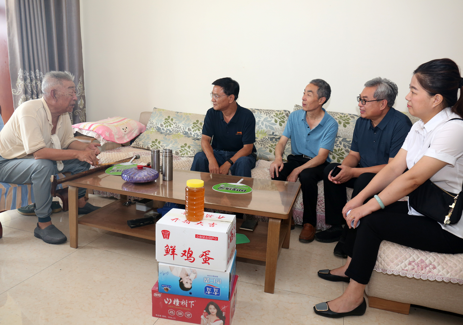 公司領(lǐng)導(dǎo)走進(jìn)退休軍轉(zhuǎn)職工家里,與他們談工作、拉家常,噓寒問暖,關(guān)切地詢問他們的身體和生活情況,了解他們存在的困難,叮囑他們要保重身體。