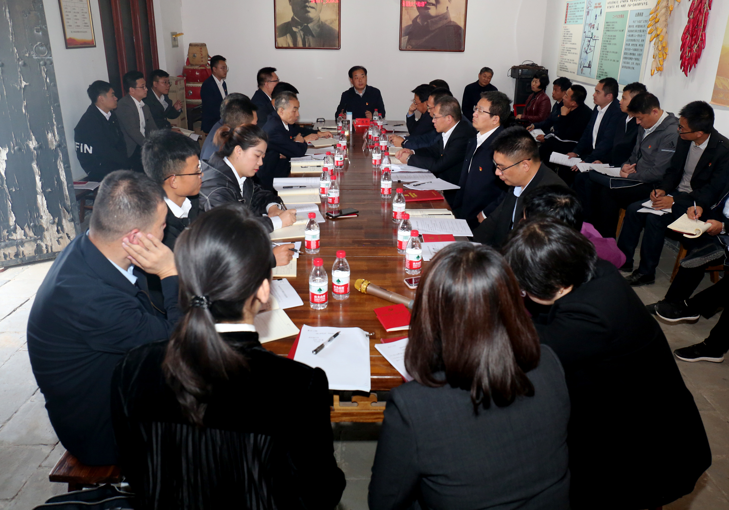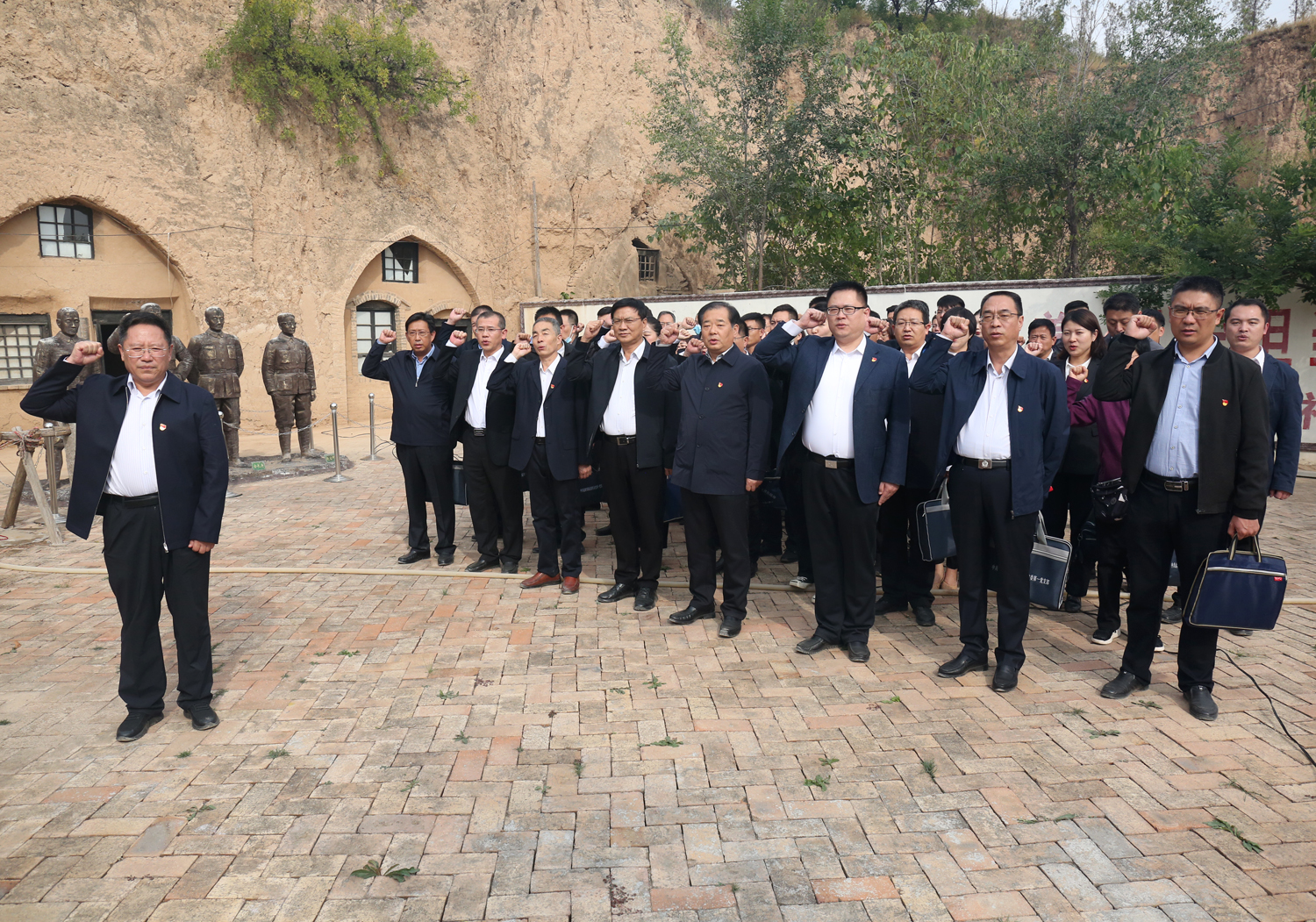 在稷麓縣抗日民主政府舊址,大家參觀了會(huì)議室、傳令班、先鋒亭等革命地點(diǎn),聆聽了“大戰(zhàn)火焰山”“夜襲杜梨凹”“楊樊莊突圍”等稷麓烽火故事,深切感受到了稷麓縣政府的柴澤民、金長(zhǎng)庚、趙宜軒、雷震龍等革命先輩攻堅(jiān)克難、不怕犧牲的英雄氣概和無私奉獻(xiàn)、敢于勝利的革命風(fēng)范,對(duì)牛莊村為革命事業(yè)所做出的犧牲奉獻(xiàn)有了切身的感受和由衷的感動(dòng)。市委政法委常務(wù)副書記、機(jī)關(guān)黨委書記周鑫同志帶領(lǐng)大家重溫了入黨誓詞。