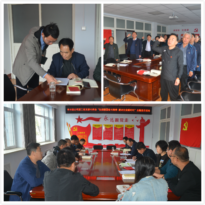 市水投公司第二黨支部10月9日開展了“弘揚(yáng)愛國奮斗精神 建功立業(yè)新時(shí)代”主題黨日活動(dòng)?;顒?dòng)共分兩個(gè)階段進(jìn)行,第一階段10月9日召開支部委員會(huì)會(huì)議,討論研究支部9月份工作總結(jié)和10月份工作計(jì)劃,同時(shí)研究10月份支部主題黨日活動(dòng)方案。第二階段10月9日下午召開支部黨員大會(huì),全體黨員、入黨積極分子、群眾代表等25人參加了大會(huì)。按照大會(huì)議程全體黨員集體繳納了10月份黨費(fèi),重溫了入黨誓詞。