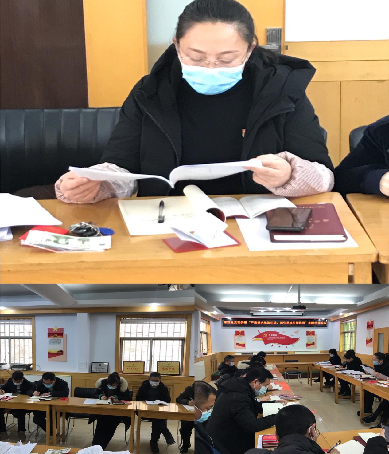 “主題黨日+”的活動,支部開展了組織生活會和民主評議黨員活動。支部書記楊素平同志對上年度查擺問題整改情況、2020年經(jīng)營目標(biāo)責(zé)任完成情況、2020年黨支部主要工作情況及支部建設(shè)存在問題情況向大家作了詳細(xì)報(bào)告。并對此次組織生活會前征求群眾意見、查擺的問題,共計(jì)支部62條,支委委員90條,經(jīng)匯總整理出的6個突出問題作了原因分析及整改承諾。大家本著出于公心、直截了當(dāng),按照“先書記、后支委、再黨員”的順序,開展了批評與自我批評,達(dá)到了“紅紅臉、出出汗”的效果,增強(qiáng)了支部的凝聚力和戰(zhàn)斗力。支部采取無記名投票的形式,進(jìn)行了民主評議黨員。