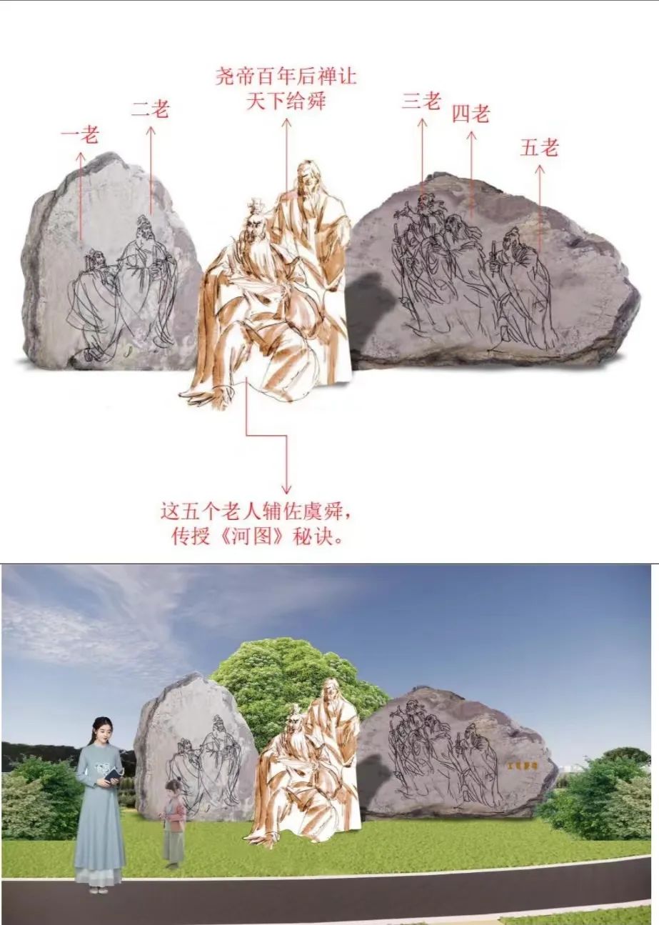 古代帝王授命于天,替天行道,故稱天子。于是,歷代帝王及其王權(quán)都希望得到上天之認可,這便是祥瑞出世,順天應(yīng)命。堯通過考察,覺得舜有擔(dān)當(dāng)、行德孝,欲讓天下給他,但不知天意如何。偶逢九月九日,便率領(lǐng)舜等大臣登上首陽山,觀察大河及河西之洛河、涇河。這時,有五個老人也在游河渚,乃是二十八宿的精靈昴日雞。其中一老告訴堯舜說:“河圖將來告帝期。”二老曰:“河圖將來告帝謀。”三老曰:“河圖將來告帝書。”四老曰:“河圖將來告帝圖。”五老曰:“河圖將來告帝符。”然后化為流星,飛升上入昴宿。不久,有兩條紅胡子龍負圖而出,堯與舜共同觀看,上邊寫道:“帝當(dāng)樞百則禪虞。”說堯帝百年后禪讓給舜。帝堯便感嘆道:“天之歷數(shù)在爾躬!”原來,上天的歷數(shù)落在你的身上!于是,便把天下禪讓給了舜。這五個老人為了教導(dǎo)輔佐虞舜,傳授《河圖》秘訣,便落戶在了永濟的虞鄉(xiāng),就是五老峰?!渡胶=?jīng)》即根據(jù)五老《河圖》演繹而成,沒有五老峰,便沒有《河圖》。