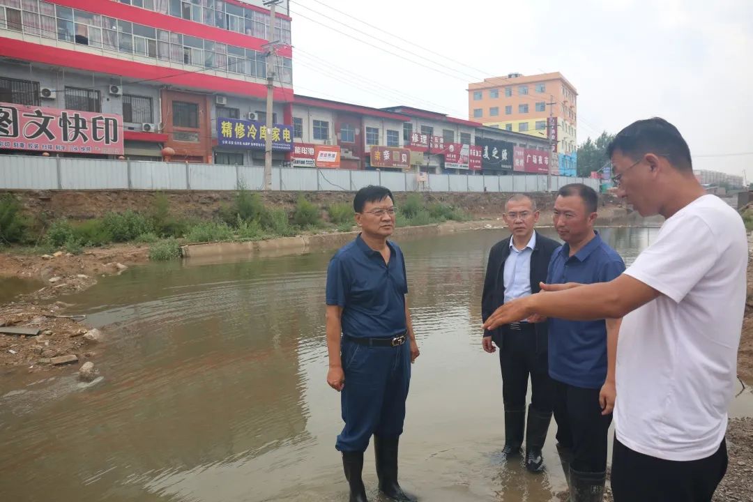 崔作銘一行赴干河綜合治理工程和姚暹渠(運三高速-禹西路)項目現(xiàn)場查看了各標段水位情況,與夜班值守人員深入交流,詳細詢問了解相關(guān)防汛措施落實情況。