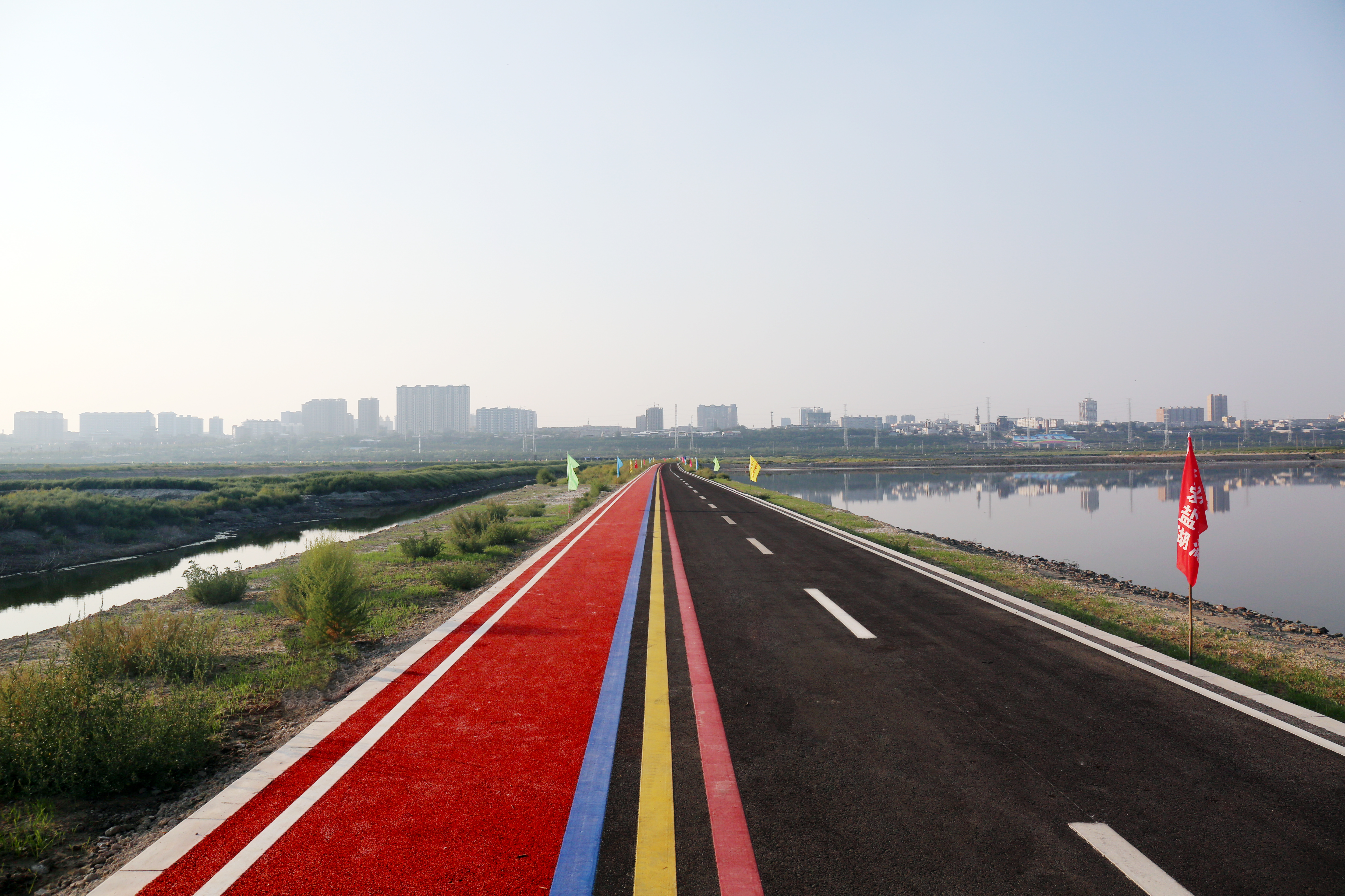 近日,在鹽湖北岸,一條嶄新的19號(hào)觀景路與死海景區(qū)相連相通;在鹽池東首,一條七彩蜿蜒的綠道一路搖曳而上,與鴨子池大壩相偎相依。