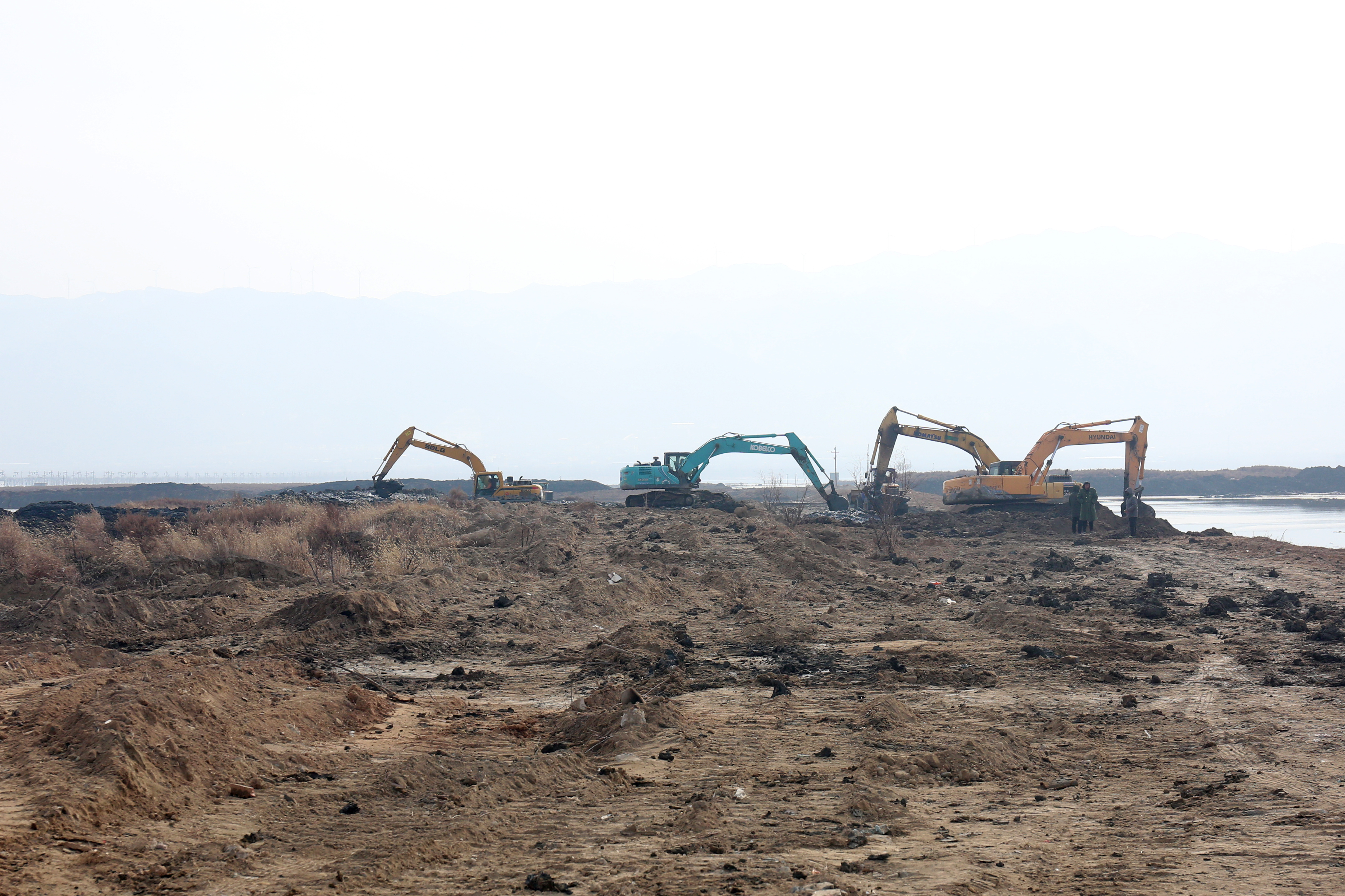 每到一處,詳細詢問施工人員康復(fù)情況、查看工地建設(shè)情況。干河清水復(fù)流段到處都是忙碌的工人,有安裝鋼壩閘的,有貼花崗巖的,有安裝欄桿的等;鹽湖生態(tài)治理工地上機械轟鳴,挖掘機、鏟車、挖泥船等20余臺大型機械有序運作,施工人員搶抓工期,處處涌動著建設(shè)熱潮。