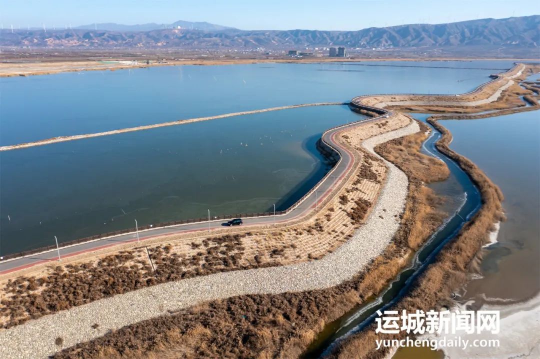 位于鹽湖以東,地勢高于鹽池,屬典型的“懸湖”,是歷史上為保護(hù)鹽池而興建的蓄滯洪區(qū)域,總面積4.7平方公里。曾經(jīng),周邊村莊的生活污水及居民生活垃圾均在這里排放,導(dǎo)致污水橫流、垃圾成堆、臭氣熏天。近年來,隨著鴨子池水生態(tài)綜合提升工程的實(shí)施,這里逐漸形成集蓄水、滯洪、生態(tài)于一體的原生生態(tài)濕地系統(tǒng),處處水清草肥、景色宜人。