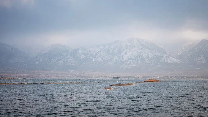 冬日的運(yùn)城鹽湖,依舊絢麗著她獨(dú)有的景色。湖內(nèi)阡陌縱橫,蘆葦蕩漾,眼前起舞的候鳥,瀲滟的波光。一旁的中條山山麓、藍(lán)天白云倒映在湖面,與七彩鹽湖交相輝映……構(gòu)成了一幅生動(dòng)的山水圖景。