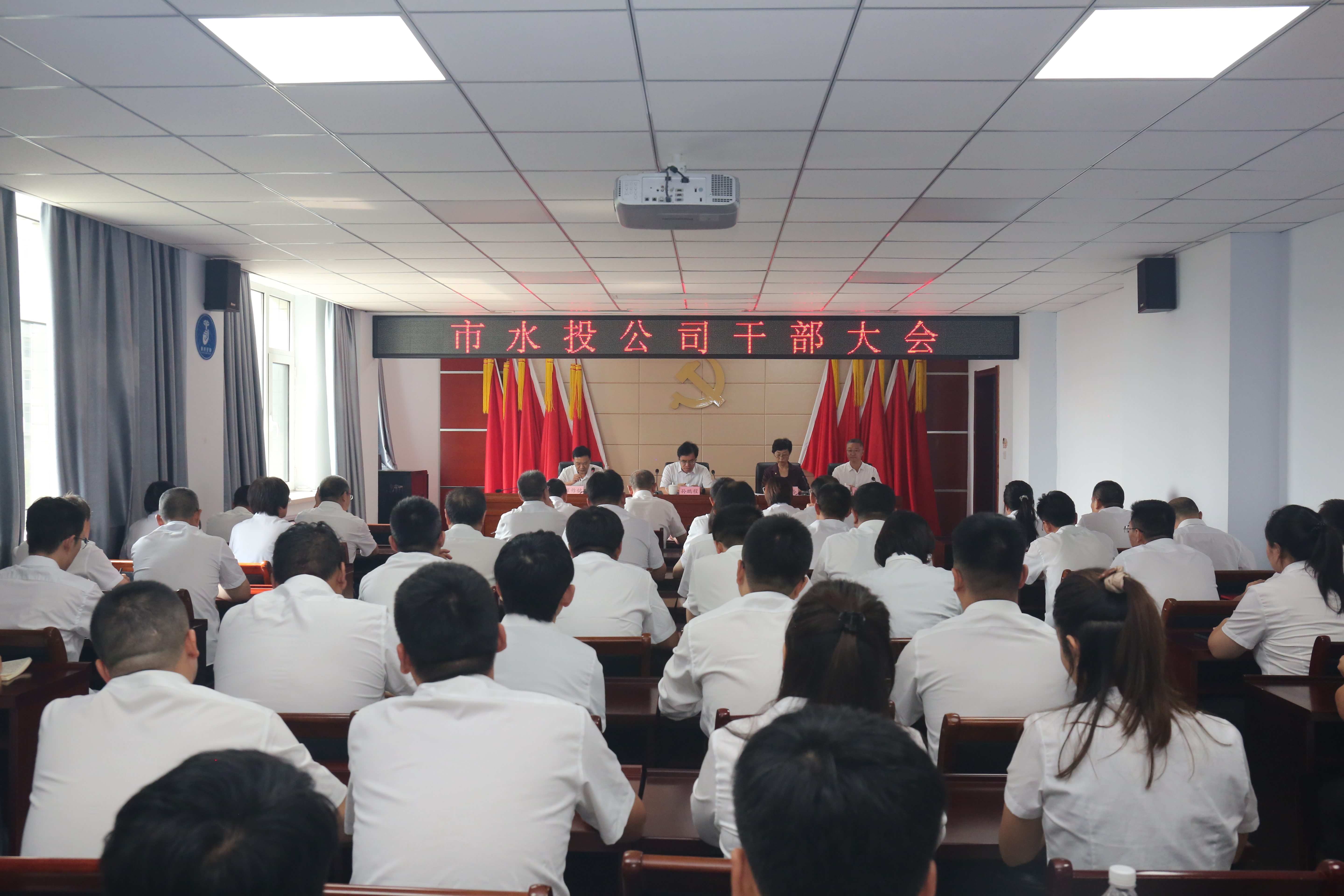 9月2日下午,市水投公司召開干部大會。市政府副市長孫鵬程,市委組織部副部長、市委老干部局局長丁文玲出席會議并講話。公司原黨委書記崔作銘主持會議。公司及子公司班子成員、公司全體干部職工參加會議。