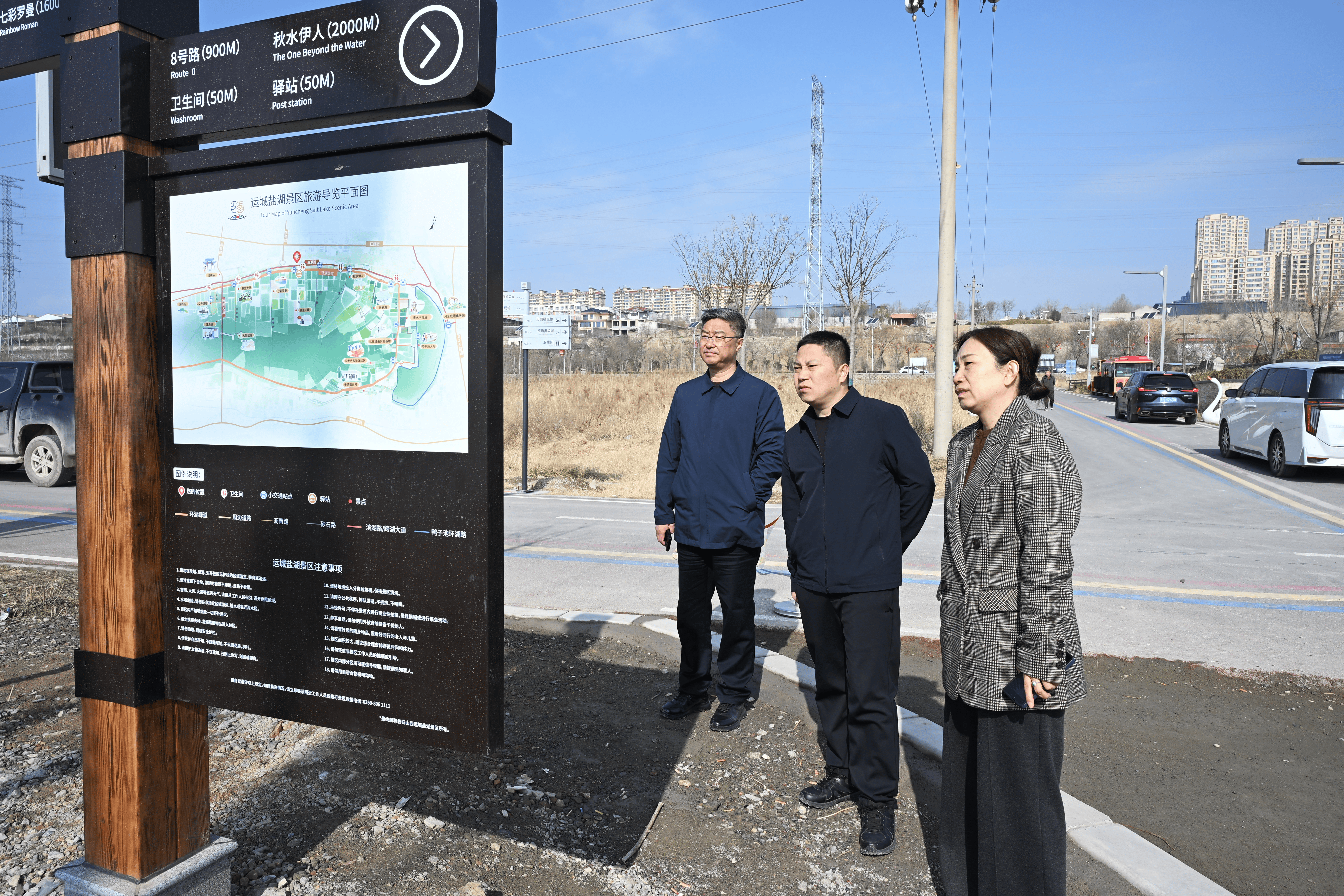 隨后,薛文兵實地查看五步制鹽體驗區(qū)施工現(xiàn)場以及鹽湖景點導視牌設置情況。他強調,五步制鹽體驗區(qū)已進入最后攻堅階段,要在抓實安全保障的前提下,確保項目按時間節(jié)點順利完工;對景點導視牌的布局、內容及外觀設計進行優(yōu)化,要充分融入鹽池生態(tài)環(huán)境,與自然景觀和諧統(tǒng)一。