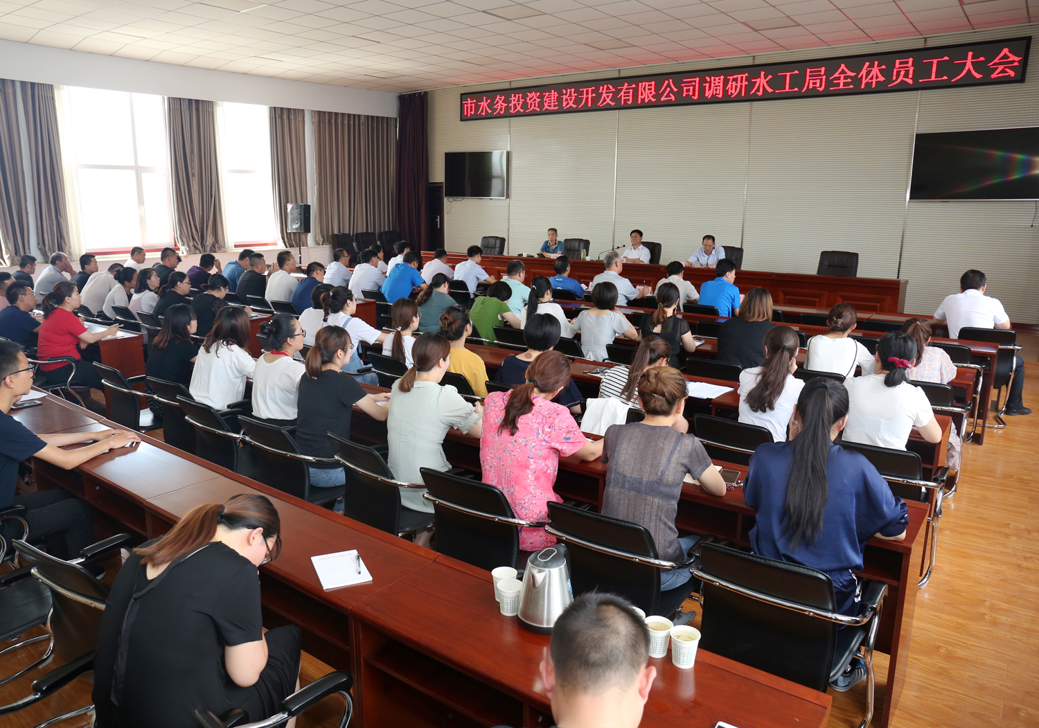 為落實(shí)市政府2019年9號(hào)文件精神,做好相關(guān)涉水劃歸劃撥單位全面承接工作,確保相關(guān)單位改制經(jīng)營(yíng)工作兩不誤、兩促進(jìn),6月11日至12日,公司黨委書(shū)記、董事長(zhǎng)兼總經(jīng)理崔作銘率領(lǐng)副總經(jīng)理呂希汶和各科室負(fù)責(zé)人,深入運(yùn)城市水利工程建設(shè)局、運(yùn)城市水利勘察院和運(yùn)城市水利勘測(cè)設(shè)計(jì)研究院進(jìn)行工作調(diào)研。