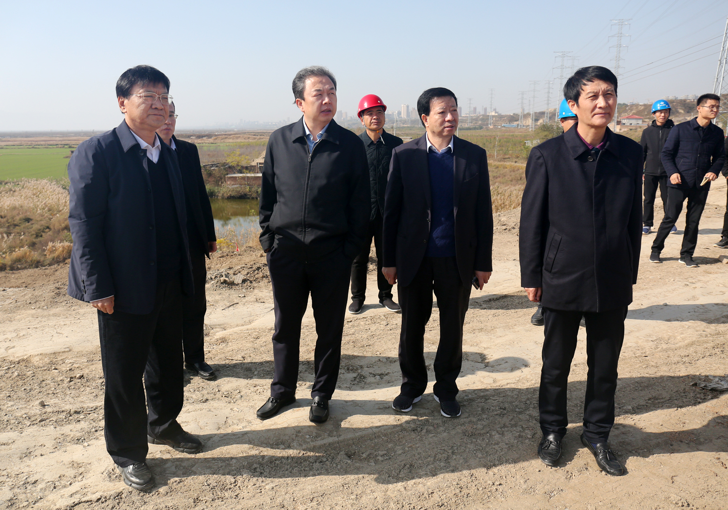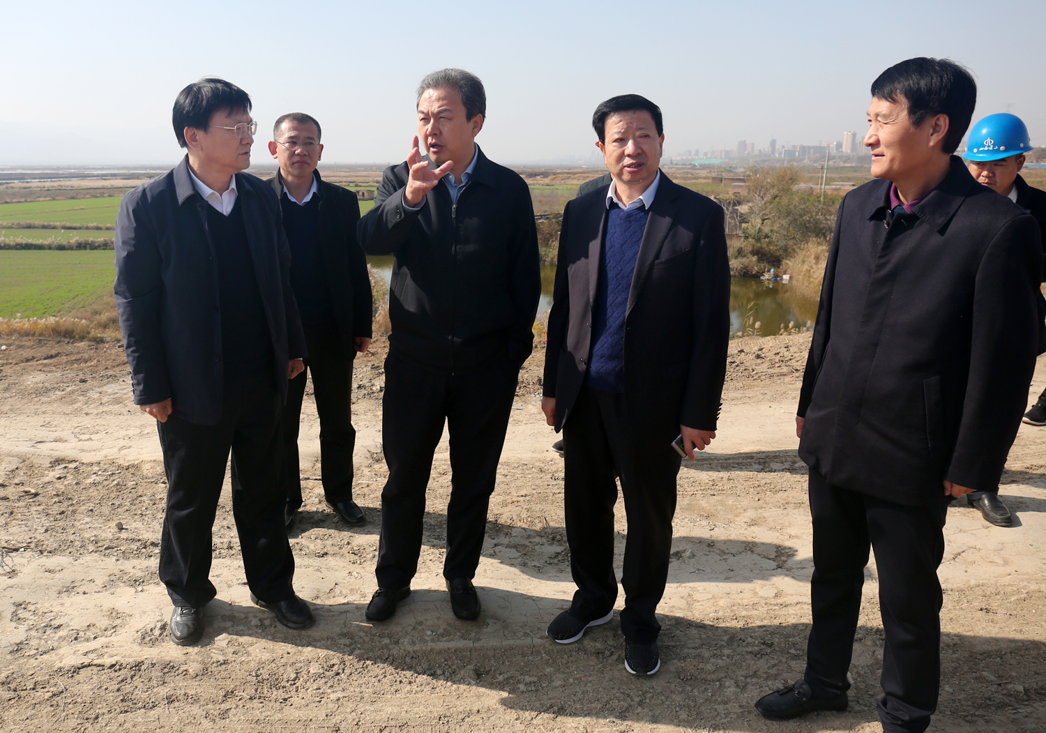 11月2日上午,衛(wèi)再學(xué)副市長蒞臨我公司鴨子池項(xiàng)目進(jìn)行調(diào)研, 現(xiàn)場聽取了公司董事長崔作銘關(guān)于項(xiàng)目進(jìn)展情況的匯報(bào),并進(jìn)行實(shí)地踏勘,在詳細(xì)了解鴨子池水位高程、中水排放問題以及大壩安全問題后,他強(qiáng)調(diào),在保證工程質(zhì)量安全的情況下,要加快施工進(jìn)度。關(guān)于項(xiàng)目排水問題,要盡快與環(huán)保部門對(duì)接,協(xié)商解決。