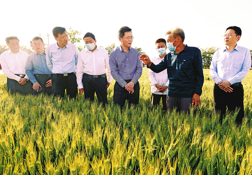 運城是農(nóng)業(yè)大市。夏縣水頭村優(yōu)質(zhì)小麥正值灌漿關(guān)鍵期,豐收在望。藍佛安走進田間察看麥苗長勢,與農(nóng)民、農(nóng)技專家交流,了解麥種培育、災(zāi)后補種等情況,強調(diào),要做好麥田中后期管理,全力奪取夏糧豐收,為保障國家糧食安全作出貢獻。在水頭村,藍佛安與干部群眾親切交談,詳細詢問農(nóng)民特別是脫貧人口就業(yè)及收入等情況,指出,基層黨組織要發(fā)揮戰(zhàn)斗堡壘作用,大力發(fā)展特色產(chǎn)業(yè),做好收入監(jiān)測、困難群眾幫扶,加強就業(yè)支持及兜底保障,促進農(nóng)民收入穩(wěn)定增長,持續(xù)鞏固拓展脫貧攻堅成果,全面推進鄉(xiāng)村振興。在維之王食品有限公司,藍佛安察看果品生產(chǎn)車間,對企業(yè)采取保護價收購農(nóng)產(chǎn)品的做法給予肯定,指出,農(nóng)民是現(xiàn)代農(nóng)業(yè)產(chǎn)業(yè)鏈的基礎(chǔ)環(huán)節(jié),要完善利益聯(lián)結(jié)機制,吸引更多農(nóng)戶投入現(xiàn)代農(nóng)業(yè)發(fā)展,實現(xiàn)企農(nóng)雙贏。在格瑞特酒莊有限公司,藍佛安察看橡木桶貯存工藝,了解葡萄酒研發(fā)、市場銷售等情況,勉勵企業(yè)拓展市場、做響品牌,不斷增強龍頭帶動作用。